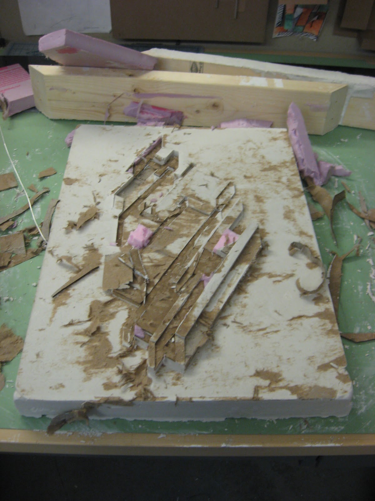 After 5 days of building, my model is 90% complete including a corner / curve of the Carpenter Center, the buildings by Robinson, Sever, Emerson, and Fog Art Museum. (showing its immediate context, seen in photo below. I now am recognizing a couple things I wish I did differently and have a couple questions regarding that. In my model the different faces of the chipboard do not read very different so my building in the site looks kind of plain and I would like to do some to distinguish it as an addition to the pre-existing site. Second, since a portion of The Carpenter Center is added, is it necessary to build a site model?